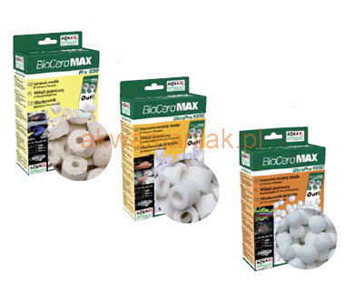BioCeraMAX Pro 600 to unikalny wkład przeznaczony do biologicznej filtracji wody w akwariach słodkowodnych i morskich, paludariach, akwaterrariach oraz basenach terrariów. Ma postać walców wykonanych z porowatej ceramiki zapewniającej bardzo dużą powierzchnię filtracyjną (600 m2/l). Wewnątrz porów walców BioCeraMAX Pro umieszczonych w filtrze akwarystycznym z biegiem czasu osiedlają się szczepy pożytecznych bakterii utleniających niebezpieczne dla ryb amoniak i azotyny. BioCeraMAX UltraPro 1200 – działa podobnie jak BioCeraMAX Pro, ale dzięki zastosowaniu w produkcji spiekanego szkła posiada powierzchnię filtracyjną 1200 m2/l. Ciekawostkę stanowi wkład BioCeraMAX UltraPro 1600. Ma postać niewielkich kulek wykonanych ze spiekanego szkła. Dzięki temu posiada niespotykanie duża powierzchnię filtracyjną – aż 1600 m2/l. to jednak nie wszystko – wyjątkowo małe pory sprawiają, że we wnętrzu kulek panują warunki stałego niedotlenienia, dzięki czemu mogą skutecznie rozwijać się tam bakterie denitryfikacyjne rozkładające azotany do postaci azotu atmosferycznego całkowicie uwalniające wodę od tego pierwiastka. Tak więc zastosowanie tego wkładu gwarantuje zapewnienie pełnego cyklu obiegu azotu w akwarium zapewniając bezpieczeństwo zamieszkującym go zwierzętom i ograniczając pracochłonność związaną z pielęgnacją zbiornika (mniej podmian wody).