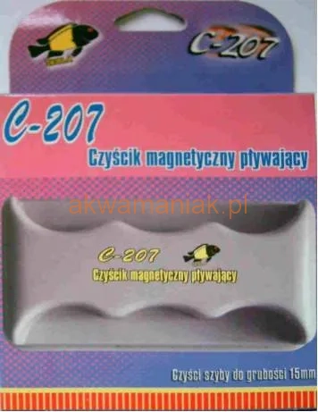 Każdy używając standardowego czyścika spotkał się z sytuacją oderwania czyścika od szyby i aby połączyć elementy ponownie, konieczne było sięganie ręką w głąb akwarium. Pływający czyścik magnetyczny jest sprytnym, efektywnym i nieuciążliwym narzędziem do oczyszczania z glonów i nalotów szyb akwarium. Zasada jego działania opiera się na wykorzystaniu siły przyciągającej magnesów. Czyścik składa się z dwóch elementów, niezatapialnej głowicy czyszczącej która pracuje wewnątrz akwarium i drugiej części tzw. rączki, którą poprzez sprzężenie magnetyczne kierujemy rychami głowicy czyszczącej w wodzie. Jest to prosty i niezwykle skuteczny sposób czyszczenia szyb bez wkładania rąk do środka zbiornika i chlapania woody na zewnątrz. Dostępny w 4 wielkościach: 6, 9, 12, 15mm