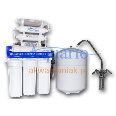 Najdokładniejszy filtr do wody pitnej, uzdatniający wodę w ośmiu etapach (sterylizacja wody z bakterii i wirusów oraz końcowa mineralizacja i jonizacja wody). AquaPure RO8 to selekcjonowana seria wysokiej jakości filtrów do wody, w konstrukcji których uwzględniono specyficzne dla Polski warunki eksploatacji.