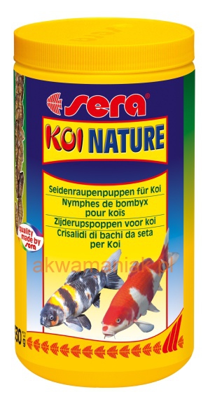 sera KOI NATURE - naturalny przysmak dla Koi, bogaty w energię. Starannie wysoszune poczwarki jedwabnika, dzięki wysokiej zawartości białka i kwasów nienasyconych, zapewniają zdrowy wzrost ryb.