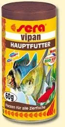 Sera Vipan jest popularnym pokarmem w formie płatków do codziennego karmienia wszystkich rodzajów ryb ozdobnych. Sera Vipan zawiera ponad 40 składników. Bogaty skład powoduje, że jest to doskonały pokarm podstawowy dla ryb w akwarium ogólnym. Jest także idealnym pokarmem dla bardziej wymagających gatunków i tarlaków, gdyż zawiera białka, które są łatwo strawne dla ryb. Regularne karmienie tym pokarmem zapewnia rybom szybki i zdrowy rozwój.