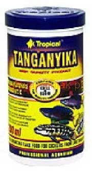 TANGANYIKA to specjalny pełnoporcjowy pokarm w płatkach dla pielęgnic z Jeziora Tanganika należących do rodzajów Altolamprologus, Julidochromis, Lamprologus, Neolamprologus, Ciprichromis, Paraciprichromis i innych, których dietę stanowią głównie organizmy zwierzęce. Pokarm TANGANYIKA zawiera najwyższej jakości białko między innymi z kryla i kalmarów, które jest źródłem cennych aminokwasów egzogennych. Wysokie walory smakowe tych dodatków sprawiają, iż pokarm jest chętnie zjadany nawet przez bardzo wybredne i wymagające ryby. Naturalną odporność ryb na choroby wzmacniają substancje zawarte w Spirulinie i witamina C. Regularnie stosowany zapewnia prawidłowy rozwój i wybarwienie ryb.